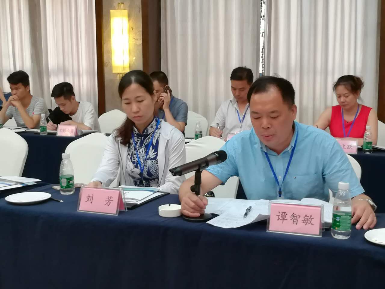 集中审议会议现场,代表审议发言。